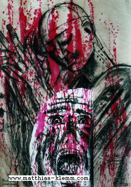 "Rufer und Gliederpuppe". Ihre beiden Elemente sind der Kopf des Rufenden, der mit der Hand einen